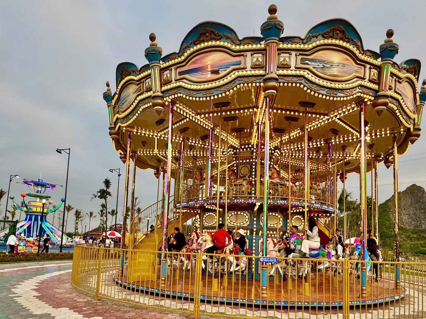 Young children delighted in playful adventures at Aerial Carousel – Light Spaceship and Camel Spin – Magic Wheel